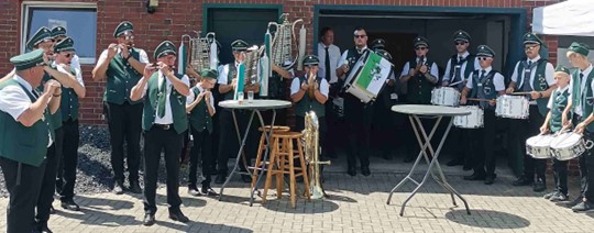 Auch der Spielmannszug Sandbochum trug mit dem einen oder anderen Ständchen beim amtierenden König für die gute Stimmung bei.